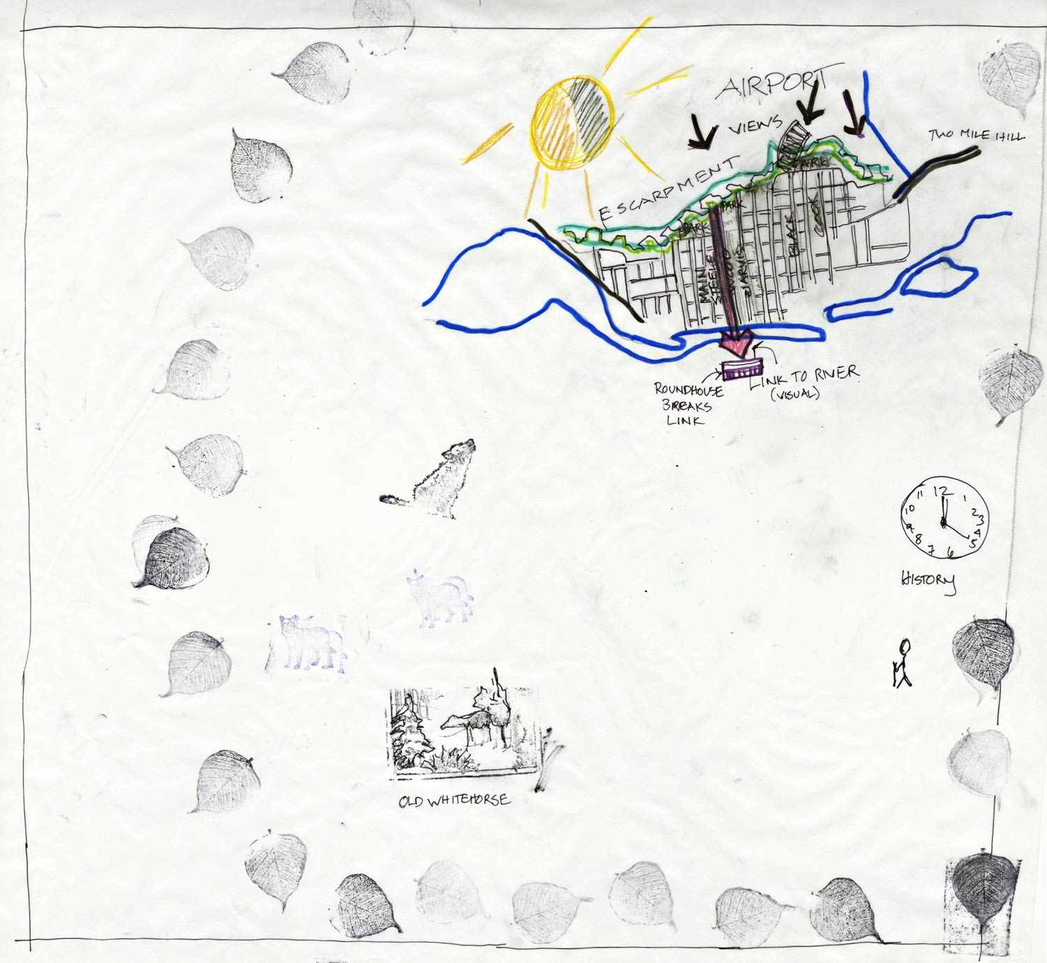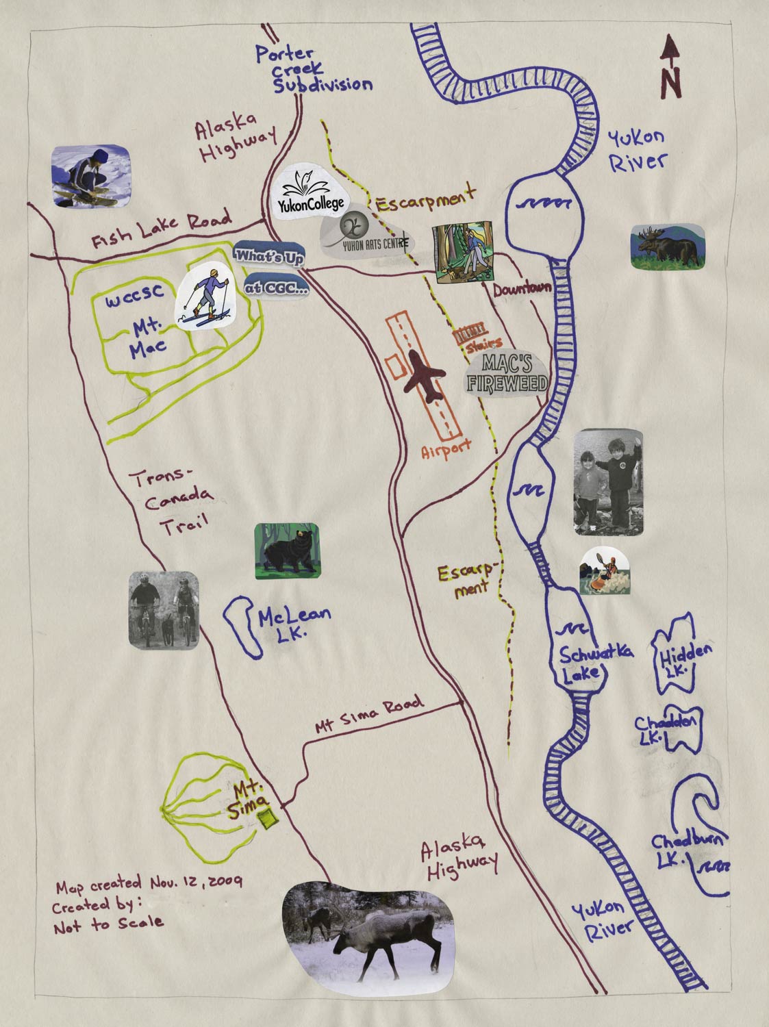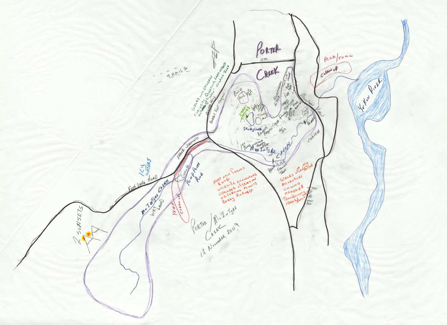 Using hand-drawn, personal maps, Whitehorse Community Climate Change Adaptation Plan members shared stories of how their neighbourhoods are used and what they value about their community. I call these 'Pooh" maps, based on Winnie-the-pooh! To see what I mean search for Winnie-the-pooh and map and look at the results by images.