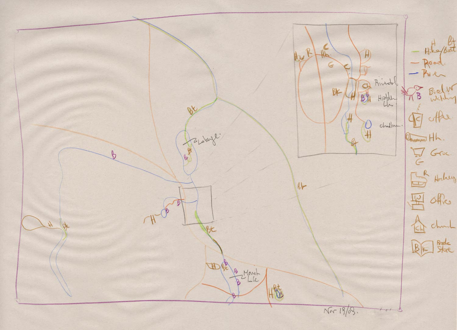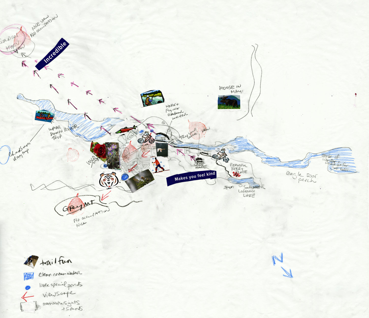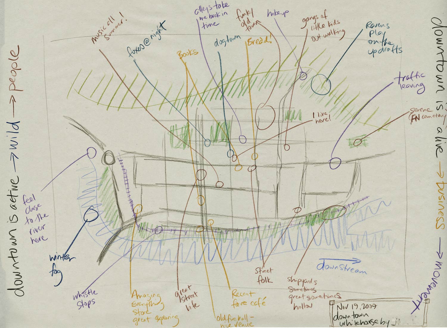 Using hand-drawn, personal maps, Whitehorse Community Climate Change Adaptation Plan members shared stories of how their neighbourhoods are used and what they value about their community. I call these 'Pooh" maps, based on Winnie-the-pooh! To see what I mean search for Winnie-the-pooh and map and look at the results by images.
